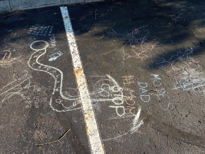 The soundtrack for my walk, randomly chosen but somehow still well-selected, was Omens, the new album from Boston stoner prog-metallers Elder. A mid-paced but driving offering of ten and twelve-minute songs, Omens enhanced my time outside without competing for attention, and would have been just as welcome and appropriate accompanying a journey through Middle Earth as through Columbus, Ohio. It was a gorgeous morning in general. Light filtered gently through the trees when I was able to walk in shade, falling up and away into a bright sunburst vanishing point imprinted like stray punctuation on the otherwise unbroken foliage, and never beat down too oppressively whenever I entered the comparative straightaways. At one point on my second lap I encountered some charming chalk graffiti located just off the sidewalk and into the lot. I couldn’t make sense out of it any more than I imagine some disgruntled readers can properly decode my prose, but I picked out the words “MOSES” and “DAD”, stacked in a conspicuously meaningful pairing, as well an accompanying stray greeting I initially misread as “HI MOM”, so it ticked some boxes. On and on I walked, enjoying myself as the day began to heat up and, especially, appreciably brighten, which, for a change, wasn’t notable as a purely physical characteristic. Mostly, I thought of my Dad, of all we’d been through and all he’d meant to me, both pre-COVID and now, on what has basically become an “every other day” calling schedule, and this post began to formulate.