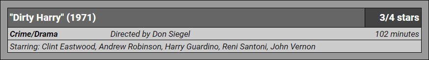 One measure of privilege that sticks – one definition, since so many are being bandied about and test driven during the hopefully transformative turbulence we as a nation are currently experiencing – might just be this. Be it white or class privilege, you learned most everything you know about the police and policing from the movies. I came to my own realization abruptly, landing with a crash. The journey was not a pleasant one. Released in 1971, as the interminable, fiercely divisive Vietnam War lurched on toward its ignominious end and the hippie movement had given way to a vociferous protest arm locked in combat both tangible and symbolic with Nixon’s fabled “Silent Majority”, Don Siegel’s Dirty Harry is a crucial pivot point in how stories about the relationship between the American people and the law enforcement professionals charged with protecting them would be told, and tinted, for decades going forward. As such, it, as much as any film in the second half of the Twentieth Century, has much to answer for, but also a good bit to teach us. A rough beast not terribly unlike its blunt protagonist on the surface, Dirty Harry is surprisingly ambitious beneath the skin. Its simultaneous aims were to function as supercharged social propaganda and a popcorn-pushing crowd pleaser while also folding into the prevailing, evolving Hollywood winds that increasingly demanded boundary-expanding realism in tone and complexity in character. Siegel’s success on the first count is fairly staggering and on the last merely impressive. His ride from point A to B was almost as bumpy as mine.