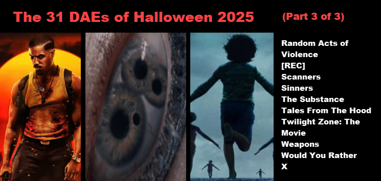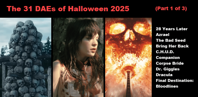 After at least seven years of blog proprietorship and attendant stonewalling, my 31 DAEs of Halloween marathon finally launched in 2022. Affectionately if inadequately recapped a few posts south of here, it proved such a rousing personal success story that it almost immediately became a budding annual concern, one for which I find myself literally waiting with bated breath for the remainder of each year. October was already my favorite month bar none – the convergence of football, weather, and horror movies is located at the very apex of my happy place – and what better way to celebrate it than with gluttonous self-indulgence, a guided tour of the many and varied delights the horror genre has to offer? Continue reading “The 31 DAEs of Halloween 2025: Deep-Dive Dispatch #1”→